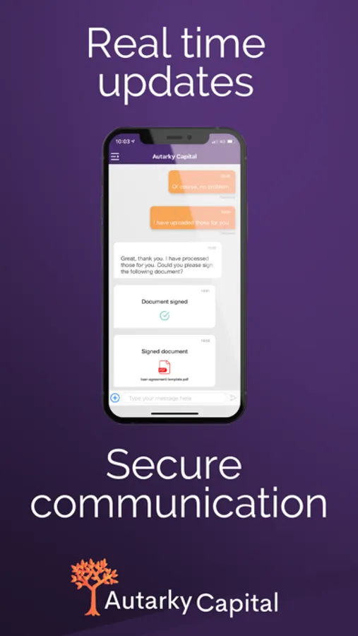 The Autarky Capital app is your safe, quick, and paperless way to communicate with Autarky Capital. Mobile first communication is the future of finance, and the Autarky Capital app utilises the latest ID&V fintech and e-signature technology to support paperless applications, provide real time updates, and eliminate reliance on time-consuming communication methods such post and email.