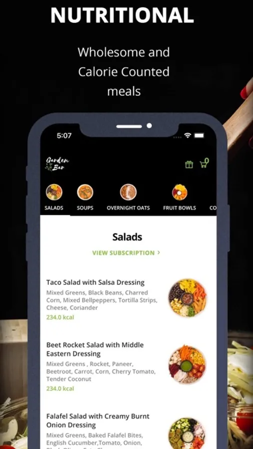 Garden Bar is an online store which carries out sale of the following: Subscription Services for Salads, Cold Pressed Juices, Soups, Overnight Oat Bowls, Detox Meals and Nutritional Counselling.