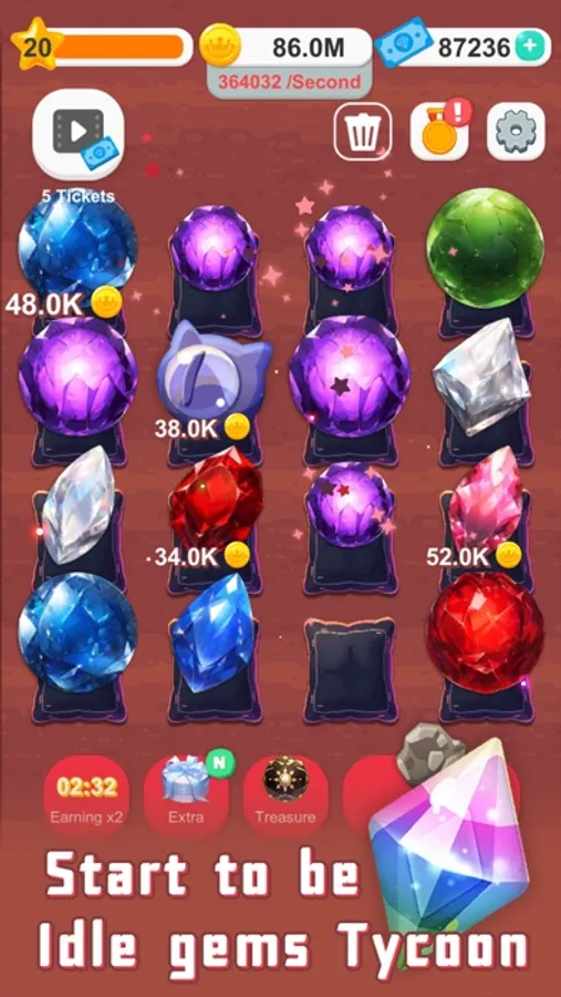 Discover a dreamlike world where you can immerse yourself in the enchanting allure of gemstones. In this captivating idle game, you have the opportunity to collect an abundance of shining gems and embark on a journey to become an idle Jewel Tycoon!