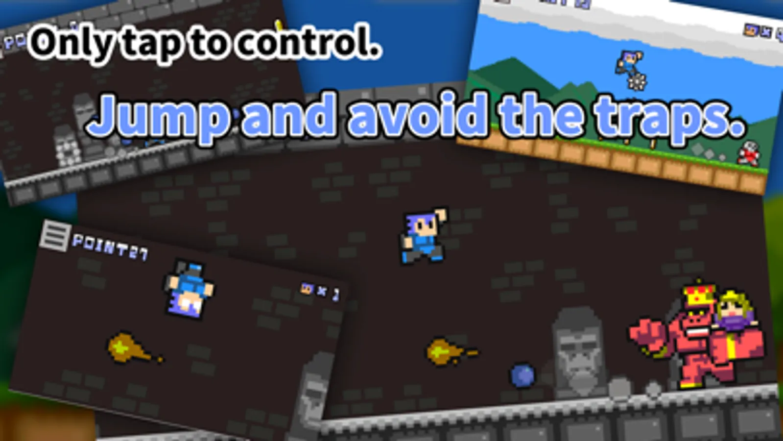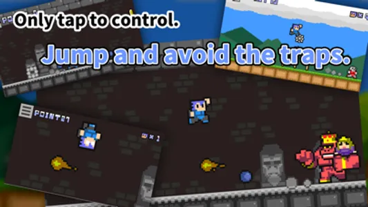 Tap the screen to jump and avoid pitfalls and enemy attacks.