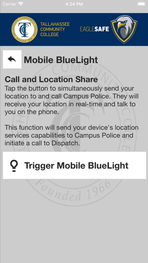 - Mobile Bluelight: Send your location to Tallahassee Community College security in real-time in case of a crisis