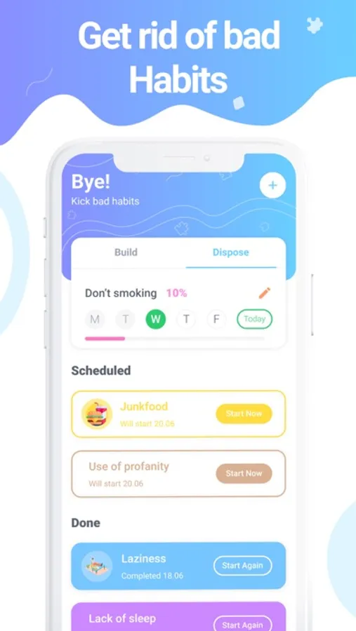 Our app helps you to manage goals and reach a better you! Spend less money, don’t bite your nails, don’t eat junk food, no meat today and other things you want to dispose of. Start with something easy and commit to your plans!