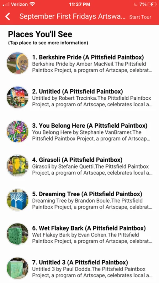 The Downtown Pittsfield App allows you to take Pittsfield, Massachusetts walking tours on your phone, including tours that change monthly as part of First Fridays Artswalk. Use the follow-me feature to see where you are as you navigate to different points of interest. If you'd prefer to stray from the path and not be confined to the tour route, you can take tours in "free roam" mode. Virtual tours can also be enabled if you're not physically in the area, or when you're in planning mode and just want an overview of the tour before making your visit.