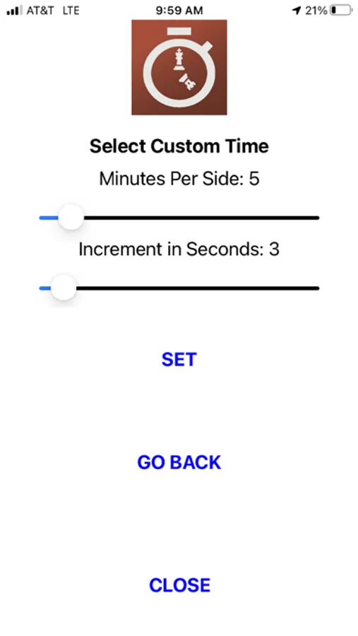 Keep track of your moves each turn. Playing competitively? Want to limit time for each player's moves? ChessTimer! provides the ability to play any chess game format with its game type menu. Don't see the time you want? Use the custom selection menu to create your own time and set how much time you get back after each turn