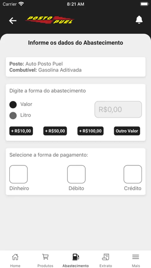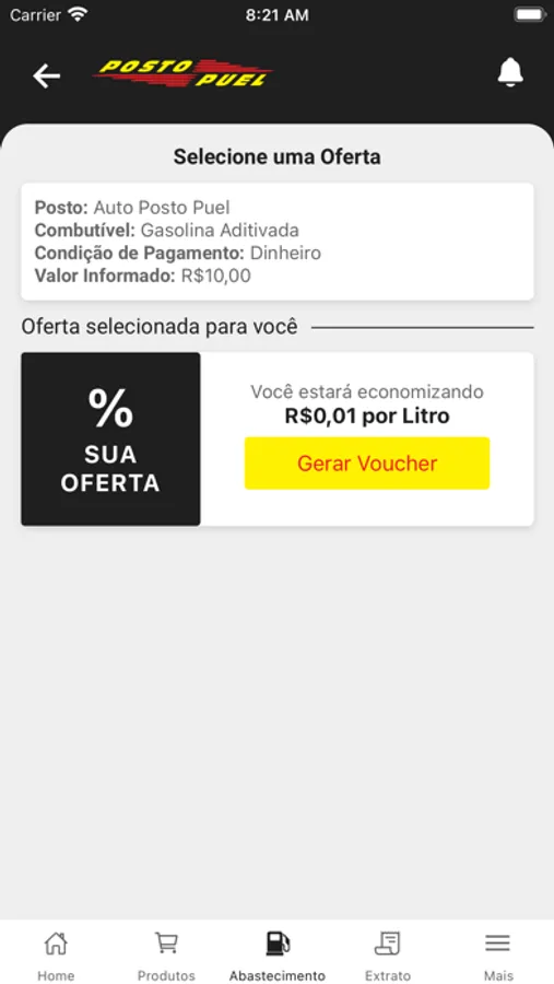 Criado pra você ter economia, praticidade e segurança. Conheça as melhores ofertas, informe quanto vai abastecer e veja quais as opções de descontos temos pra você.