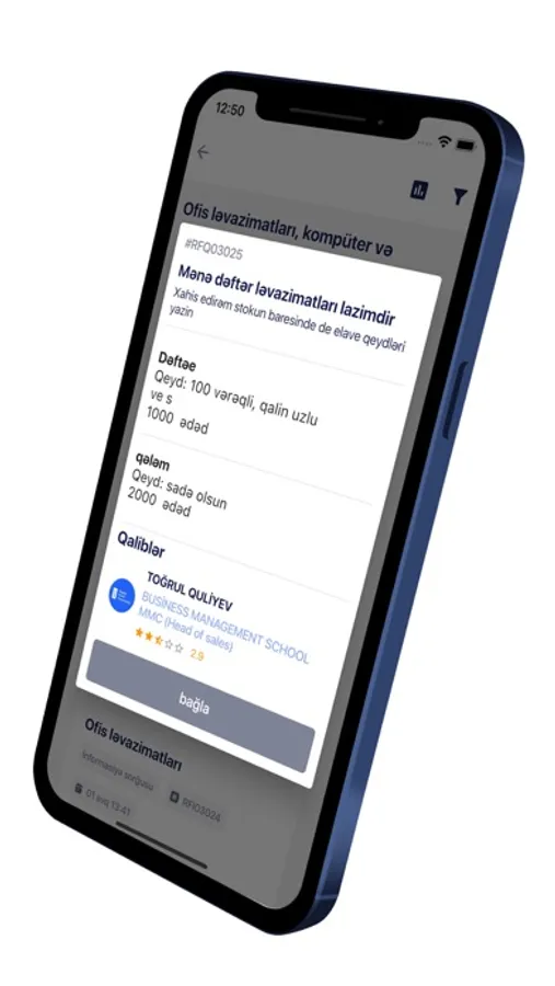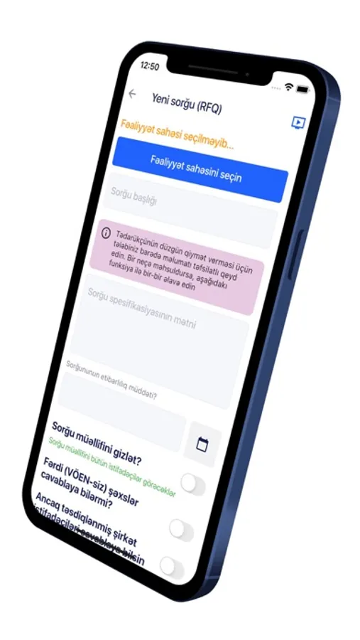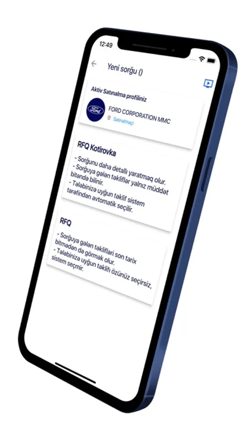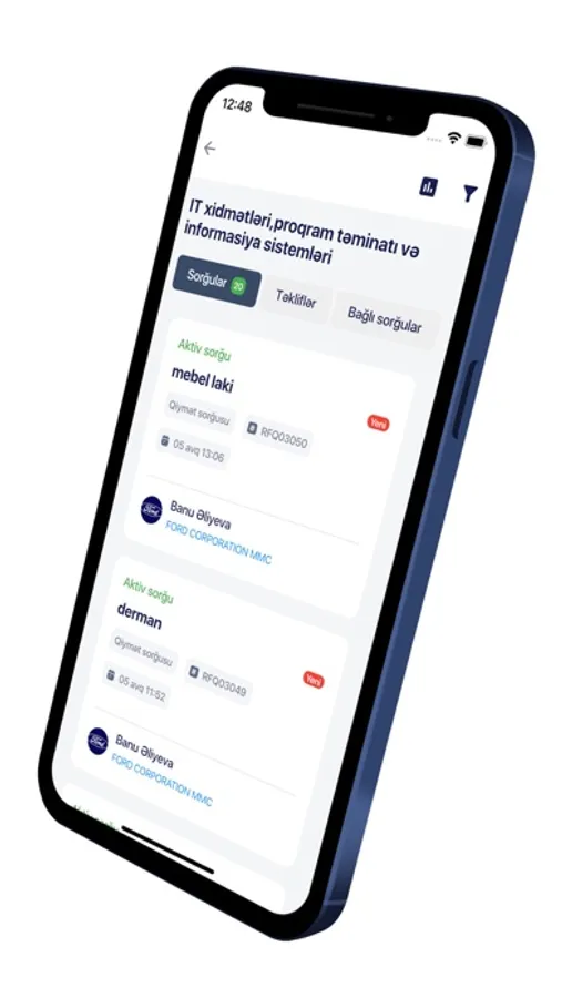 § Sorğu növlərini RFİ, RFQ, RFP, Tender ve sair üsulla göndərə və təklifə cavab almaq imkanı var.