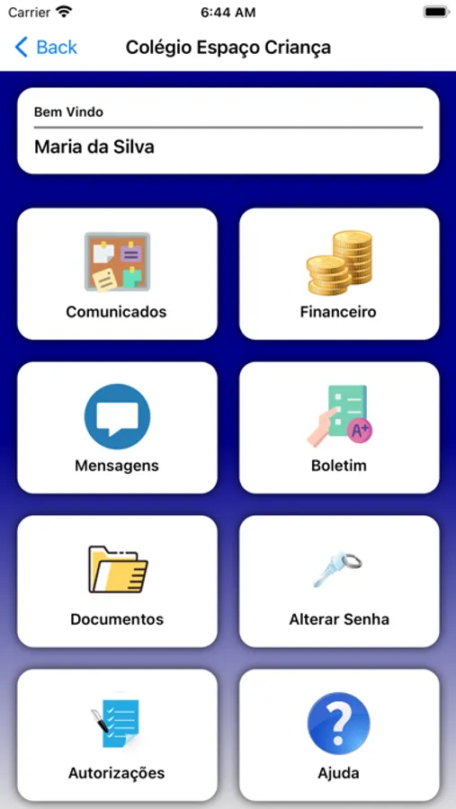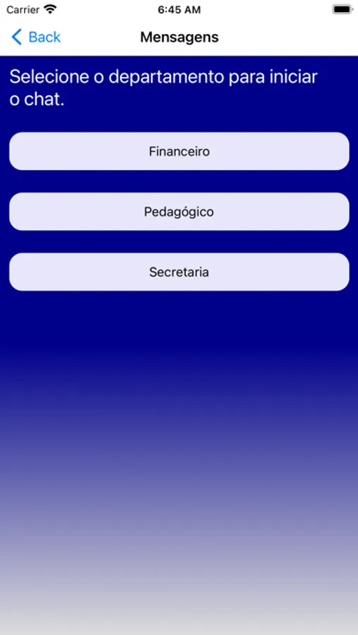 O app também possui chat exclusivos para os setores financeiro, pedagógico e da secretaria para um contato direto com o colégio.