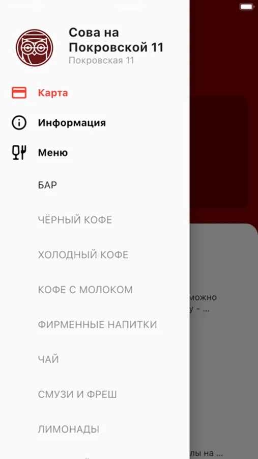 Официальное приложение кафе Сова на Покровской 11 в Орле.