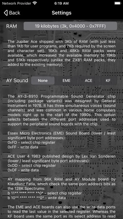 This app focuses on the Jupiter ACE experience and is loaded with example software. Please note that the system is completely self-contained and this means you cannot remotely add code, more games etc.