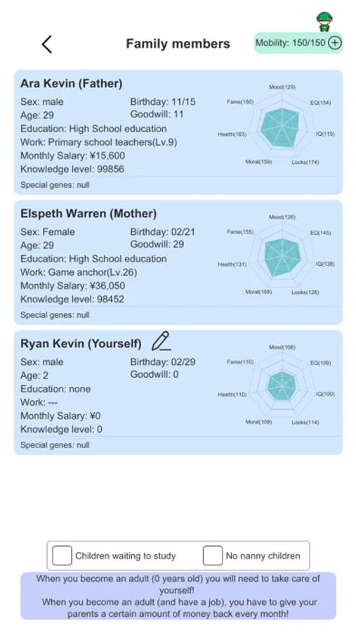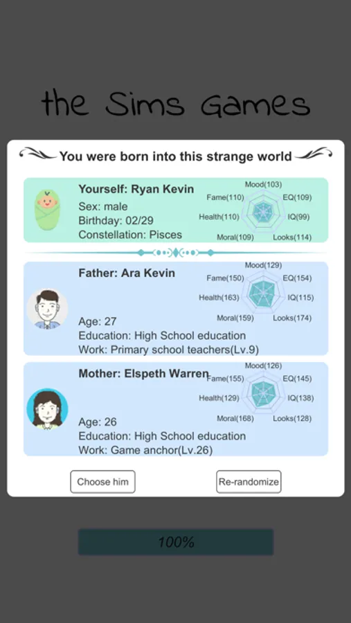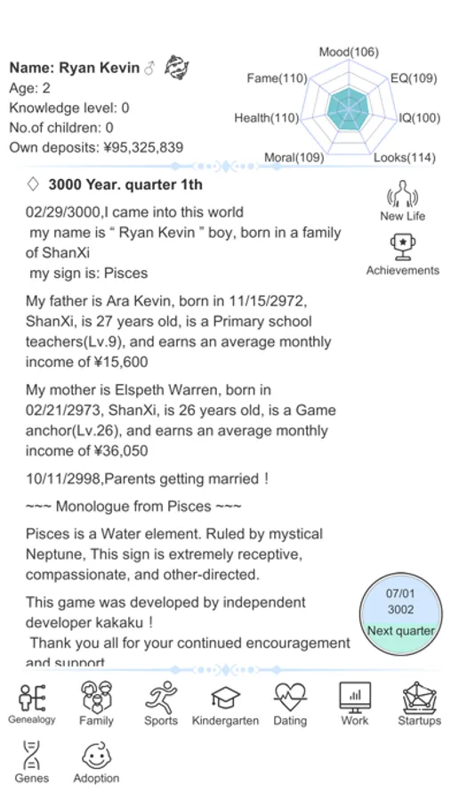 Your IQ, face value etc. are also randomly generated. This ensures that you experience a different life every time!