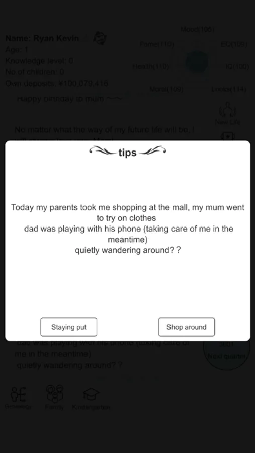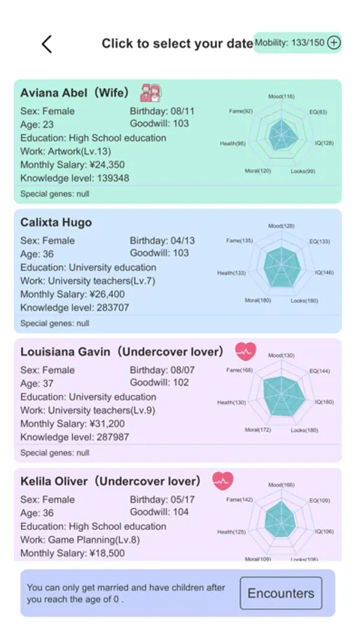 There are also various random events in the game, and often different choices lead to different lives, the so-called "butterfly effect".