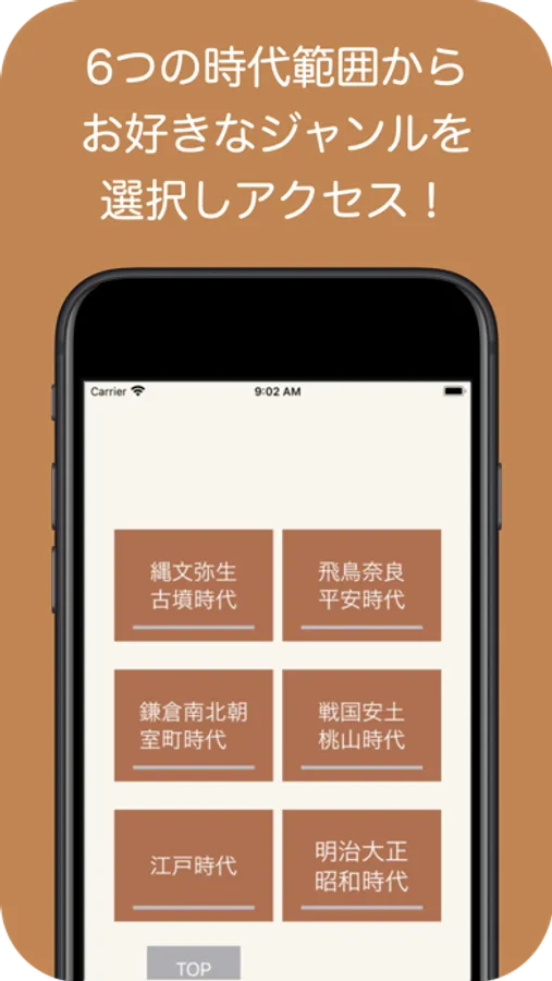6つの時代ジャンルから選択することが出来ます。それぞれのボタン下のバーで進捗を確認することが出来ます。