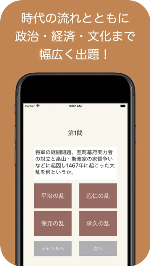 問題が画面上に表示され、その下の4つの選択肢から回答を選びます。
