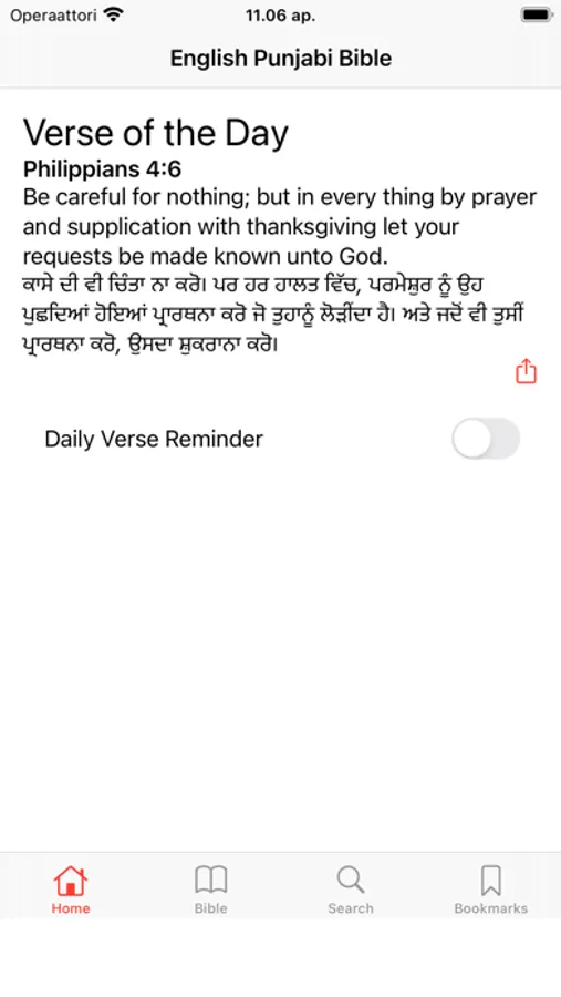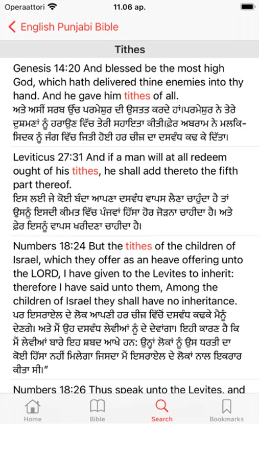 An English with Punjabi parallel version Holy Bible that is completely offline. This is the only Bible app you'll need when attending a church service or personal devotion. You can highlight, copy, bookmark or share verse(s).