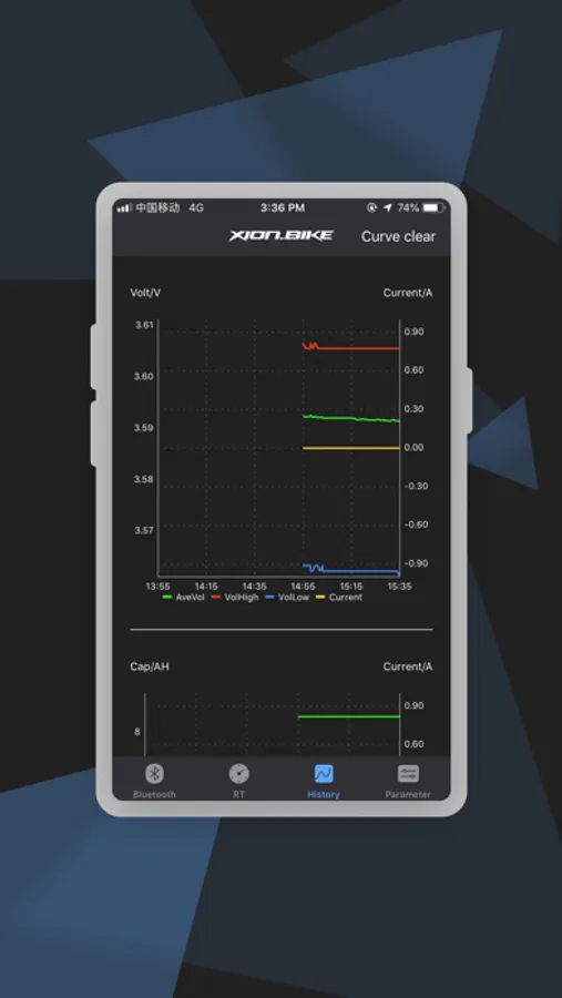 XionBike app alows you to monitor voltage of the cells,total capacity,current,temperatures on your iPhone.
