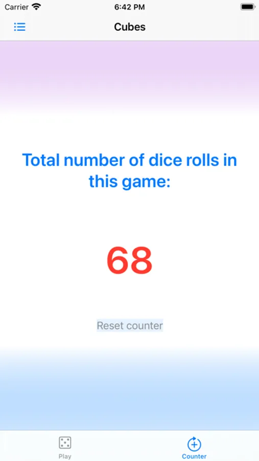 One to six dice are supported. Also, the application has a counter and a text editor for notes.