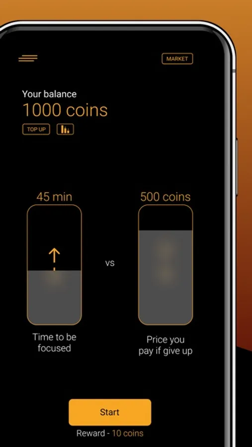 Choose the time, how much you want to stay focused and a price as a motivation not to lose if you give up. The app deposits this amount and returns if stayed focused.