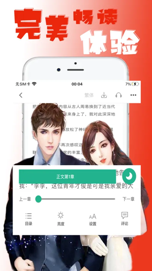 记忆阅读,翻页,选章节功能,灵活调整背景亮度、行间距/页边距/