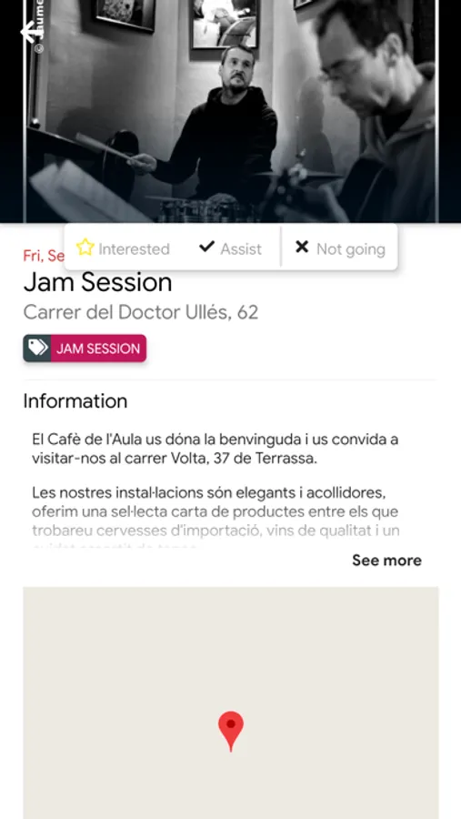 L’escola compta dins de la mateixa ubicació amb el cafè de l’aula, un espai públic per gaudir de la música en viu tant per alumnes com per a professionals.
