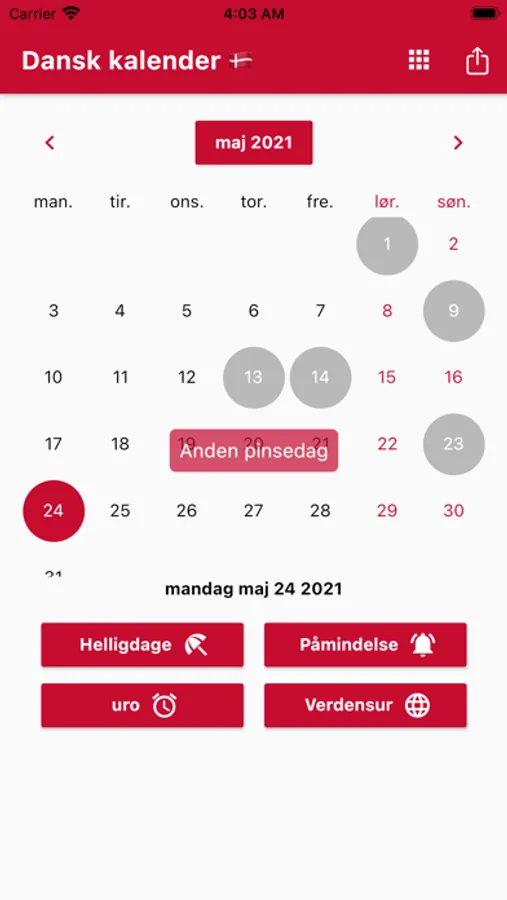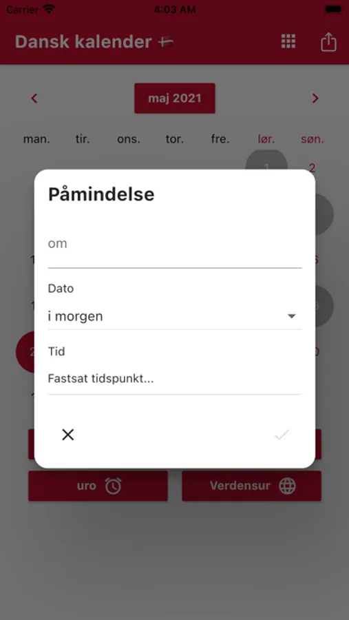 Du kan indstille påmindelser og få besked på det rigtige tidspunkt. Vi sørger for at minde dig om Dansk Helligdage.