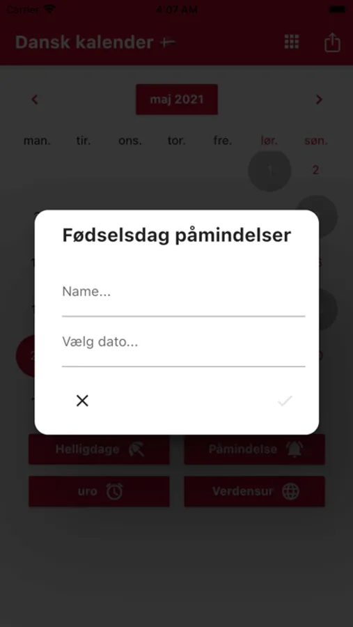 Du kan registrere fødselsdage for dine venner og familier for at få besked på forhånd.