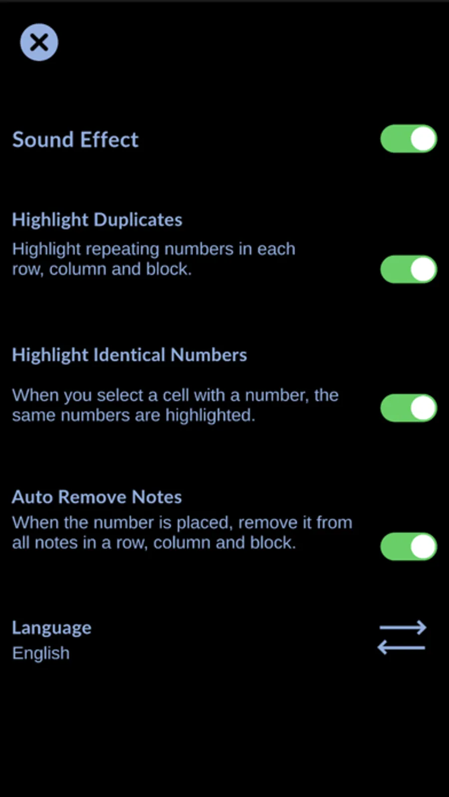 See how well you are doing by checking statistics like games started, games won, win rate, wins with no mistake, best time and average time for every difficulty mode.