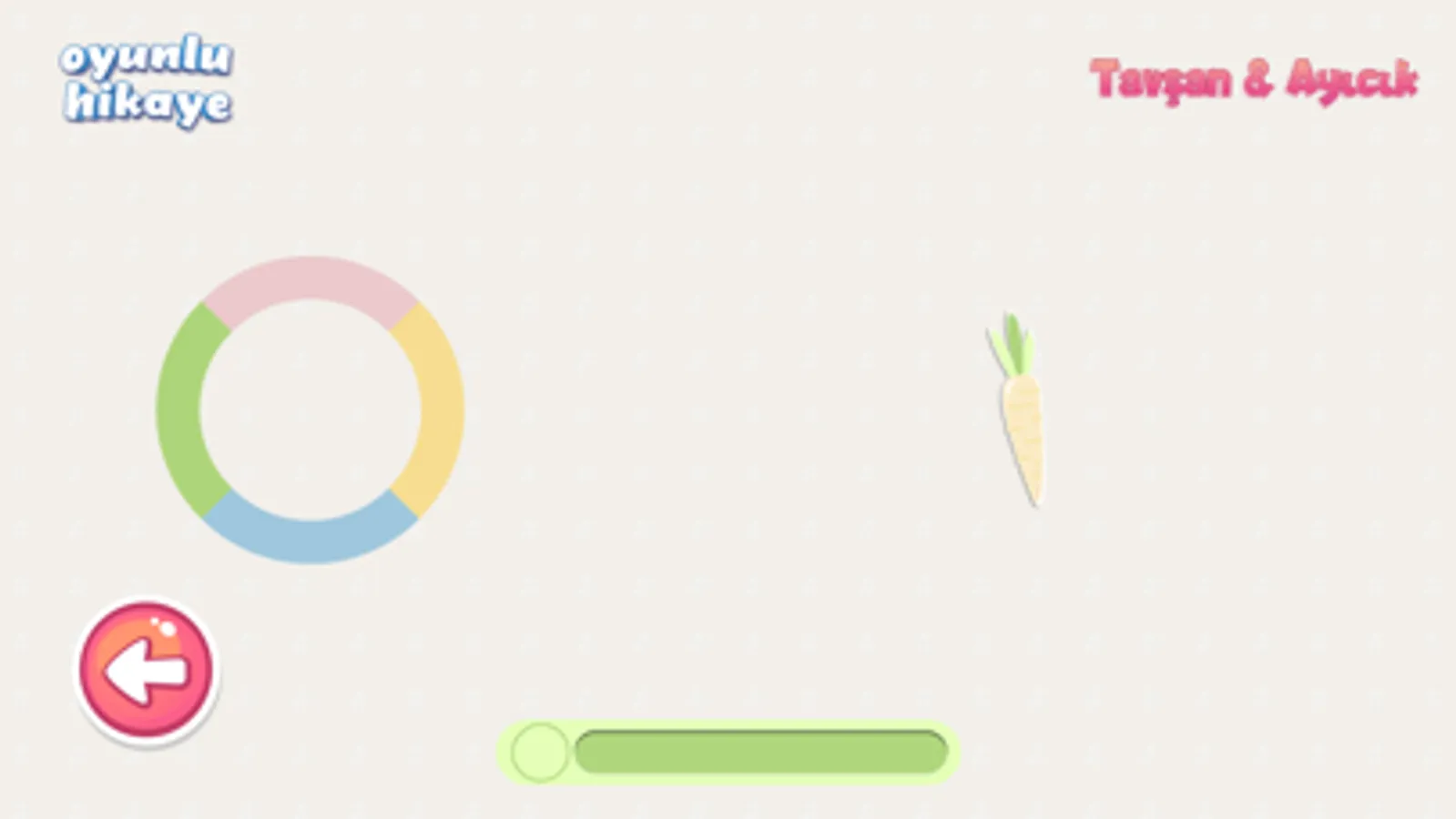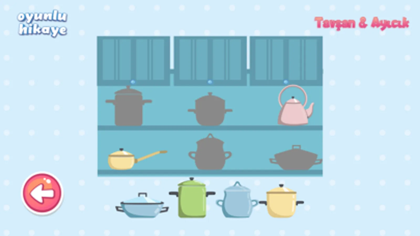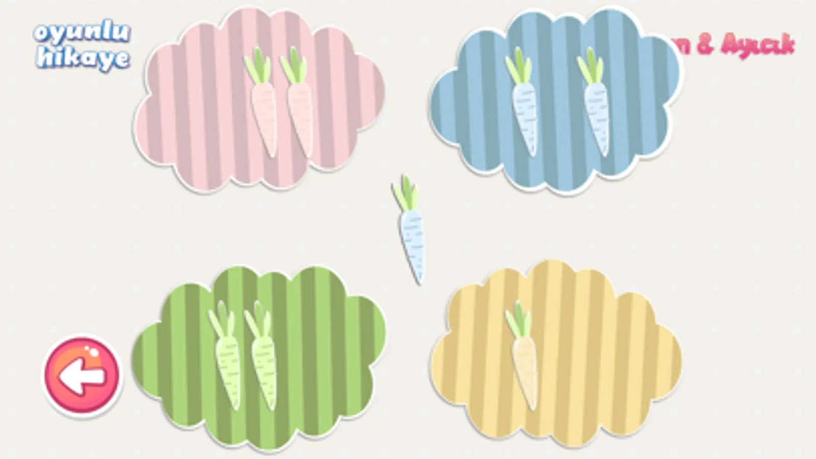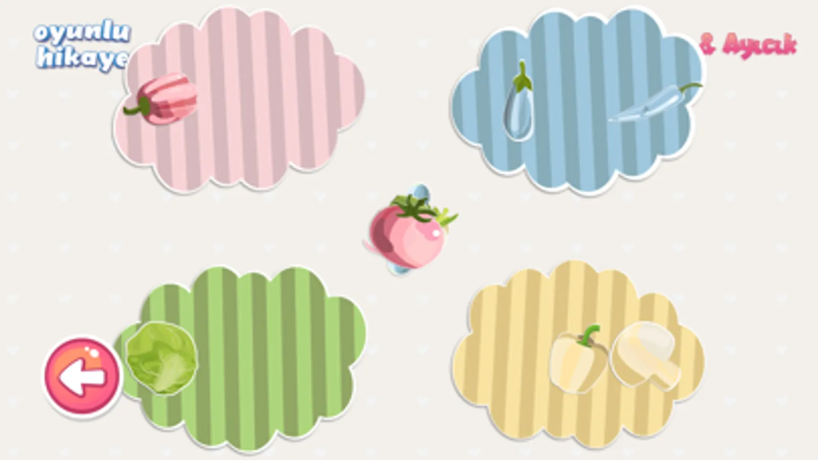 Oyunlu Hikaye 1 Tavşan & Ayıcık uygulamasında ,çocuklara sebze yemenin önemi anlatılmakta ve oyunlarla pekiştirilmektedir. Çocuğun sebze ile beslenmeyi sevmesi özendirilmektedir. Aynı şekilde odalarını toplamaları çeşitli oyunlarla özendirilmektedir.