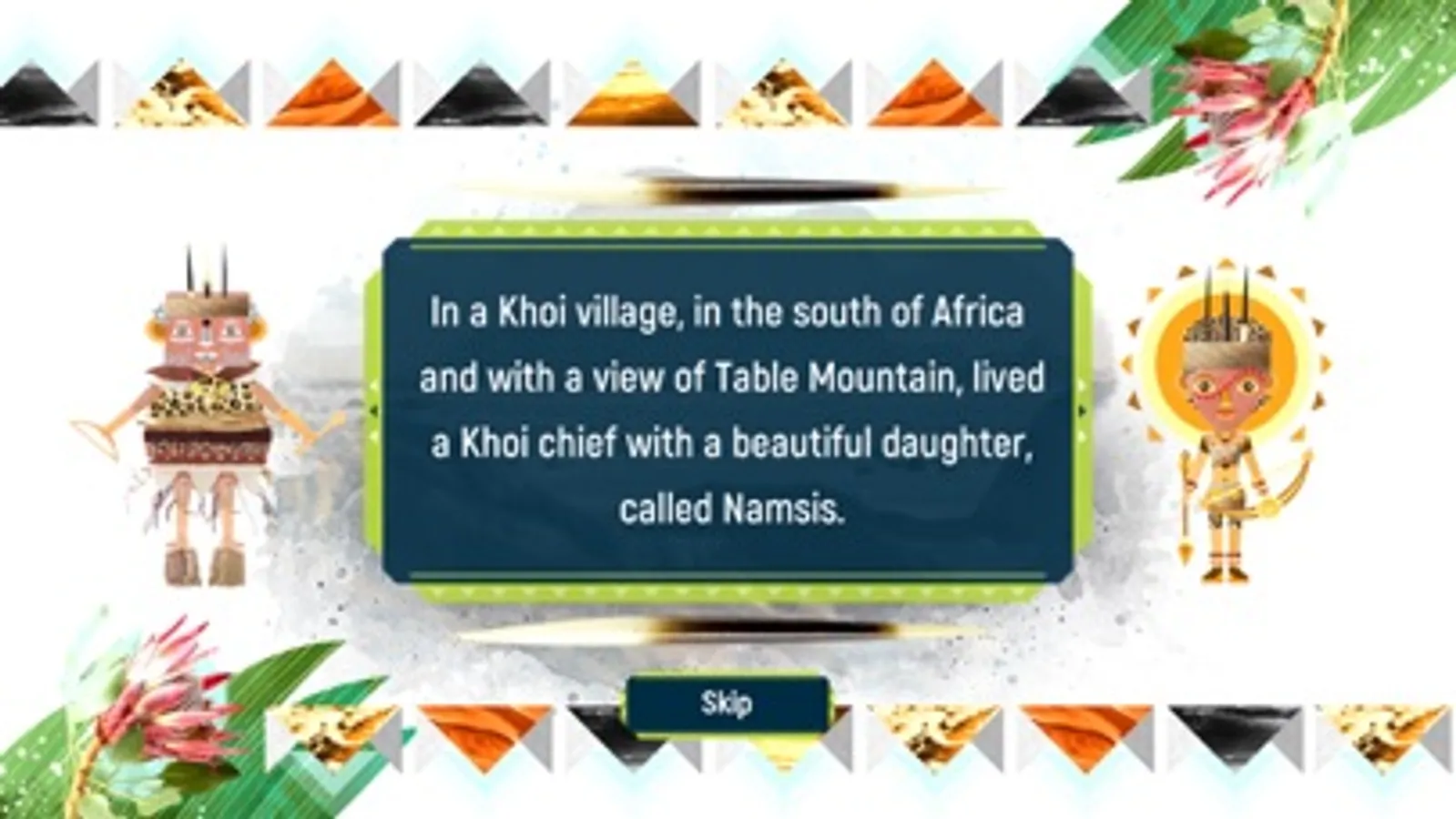 This project aims to meet young people in their IT-supported worlds, by creating platforms for storytelling via electronic games. The story for this game, Khoi Quest, was collected during a story telling event on a farm near Stellenbosch. A Khoi story teller and poet told a story to a multi-generational group of Khoi people. This story was transcribed, and with continuous input from the Khoi representatives, visualised by a graphic artist and coded into a game, using Unity.