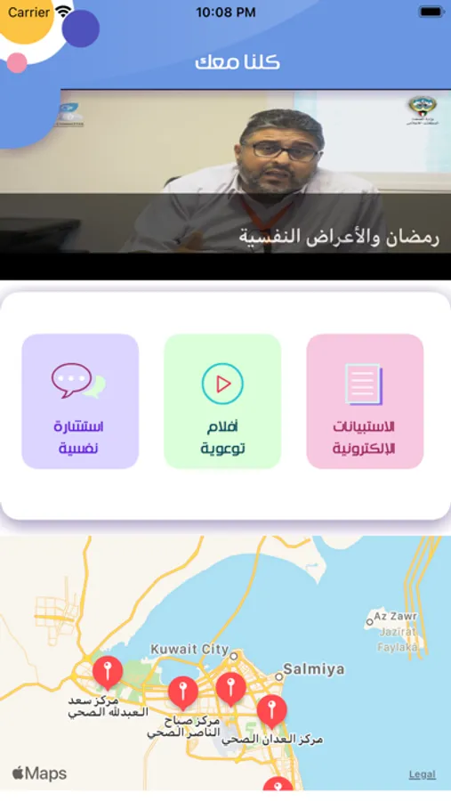 كلنا معك... منصة إلكترونية متطورة للتعريف والكشف المبكر للأمراض النفسية تجنباً للمضاعفات المترتبة على الإصابة بها من خلال التوجيه بإجراء الفحوصات الطبية، وترسيخ السلوكيات والعادات الحياتية السليمة، وكيفية التعامل في حال الإصابة به، ومتابعة مواعيد الطبيب والعلاج