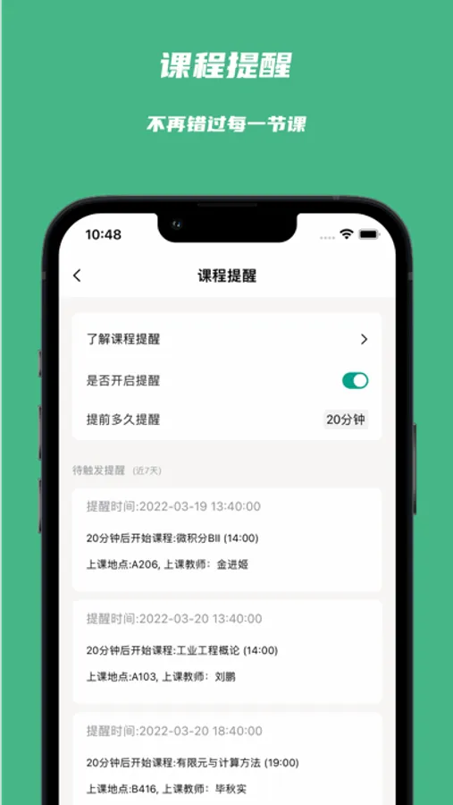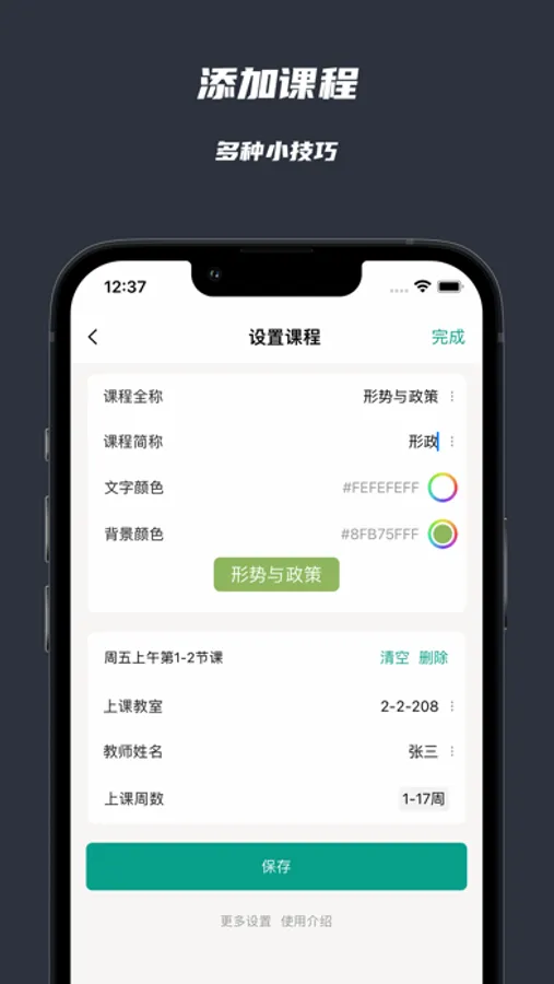 7. 支持自定义某节课的上下课时间,部分同学会出现不同的教学楼上课时间不一样