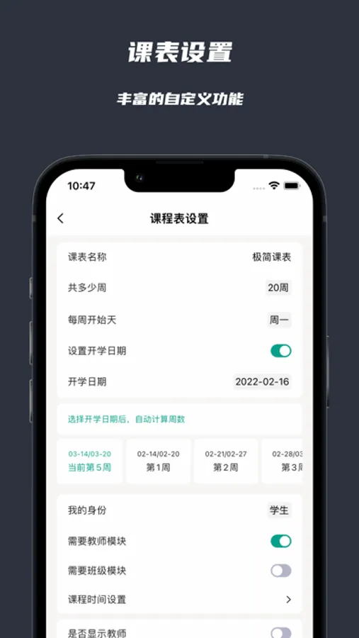 5.可设置每节课上课的周数、如全部、单独、双周、指定周