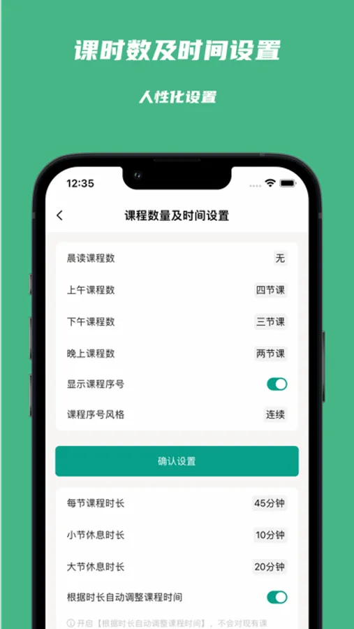 1.可自由设置上午、下午、晚上各阶段课程数量