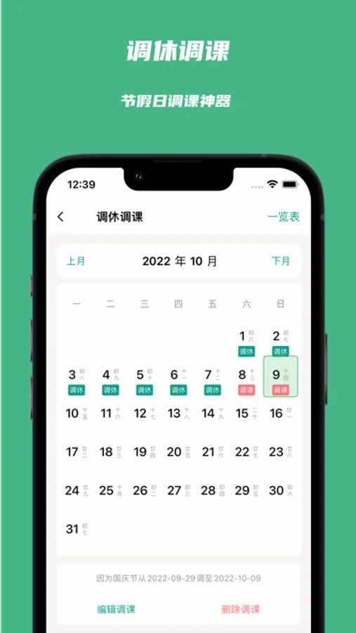 8.支持调休调课,为国庆,端午,中秋等节假日而准备