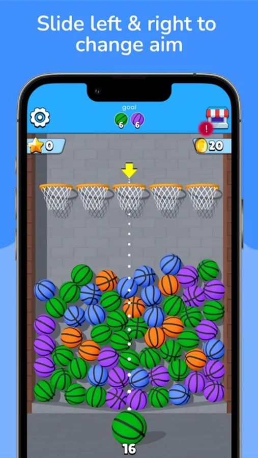 • Swipe left and right to control the ball's shooting direction with precision and finesse.