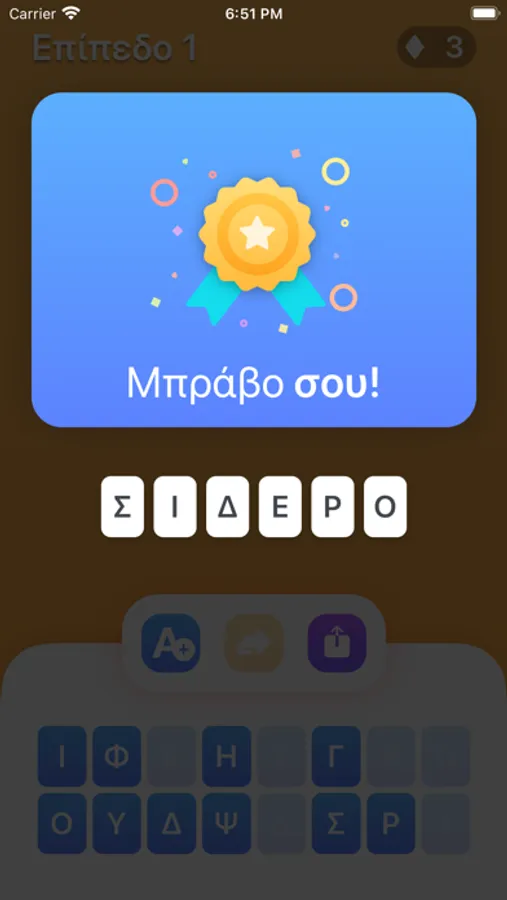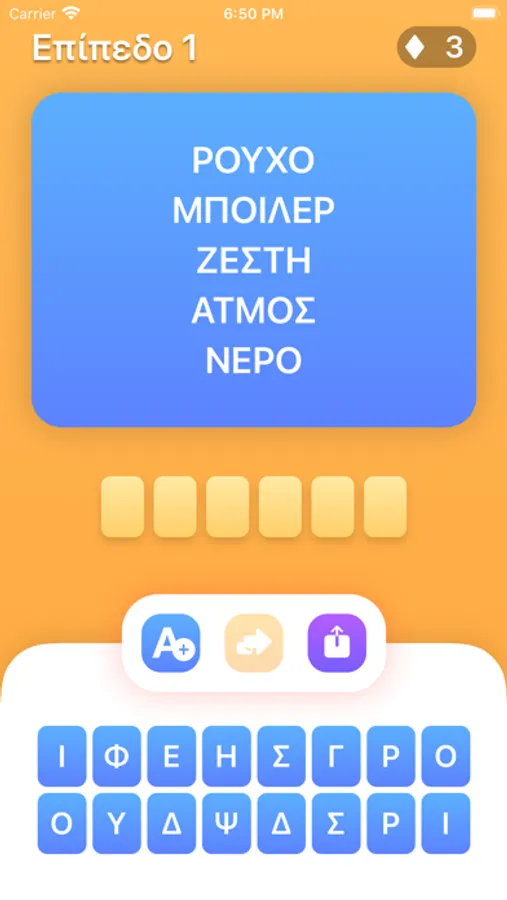 Πάρτε βοήθειες αν δυσκολευτείτε, με Αποκάλυψη Γράμματος, Αποφυγή Επίπεδου ή Μοιραστείτε με τους φίλους σας στα social media τον γρίφο!