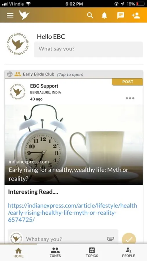 A global platform where individuals from all walks of life participate and share their experiences with waking up early and inspire each other to utilize that "Golden Hour" for self improvement and prosperity!