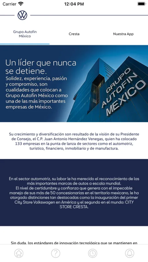 Entra a un universo lleno de sofisticación y conoce, mediante un recorrido 360º una concesionaria VOLKSWAGEN. Además, podrás explorar los atributos de los autos con videos sorprendentes, solicitar una prueba de manejo fuera de serie, conocer nuestros orígenes y enamorarte de nuestra pasión con las fotos y videos de la galería.