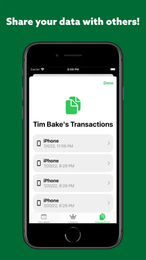 Log your transactions and view the day at a glance with the Today view, giving you a quick way to check up on your progress. This Week, on the other hand, provides customizable graphs and highlights to examine the full range of your recorded data - and view highlights from your full history of transactions with Lifetime.