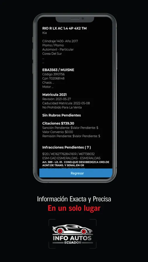 Válido exclusivamente para vehículos Ecuatorianos - Obtén toda la información vehicular con tan solo una fotografía o número de placa