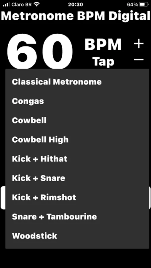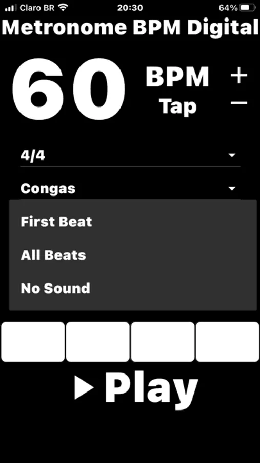 The BPM Digital Metronome lets you play different types of beats in measures 2/4, 3/4, 4/4 or any other measure.