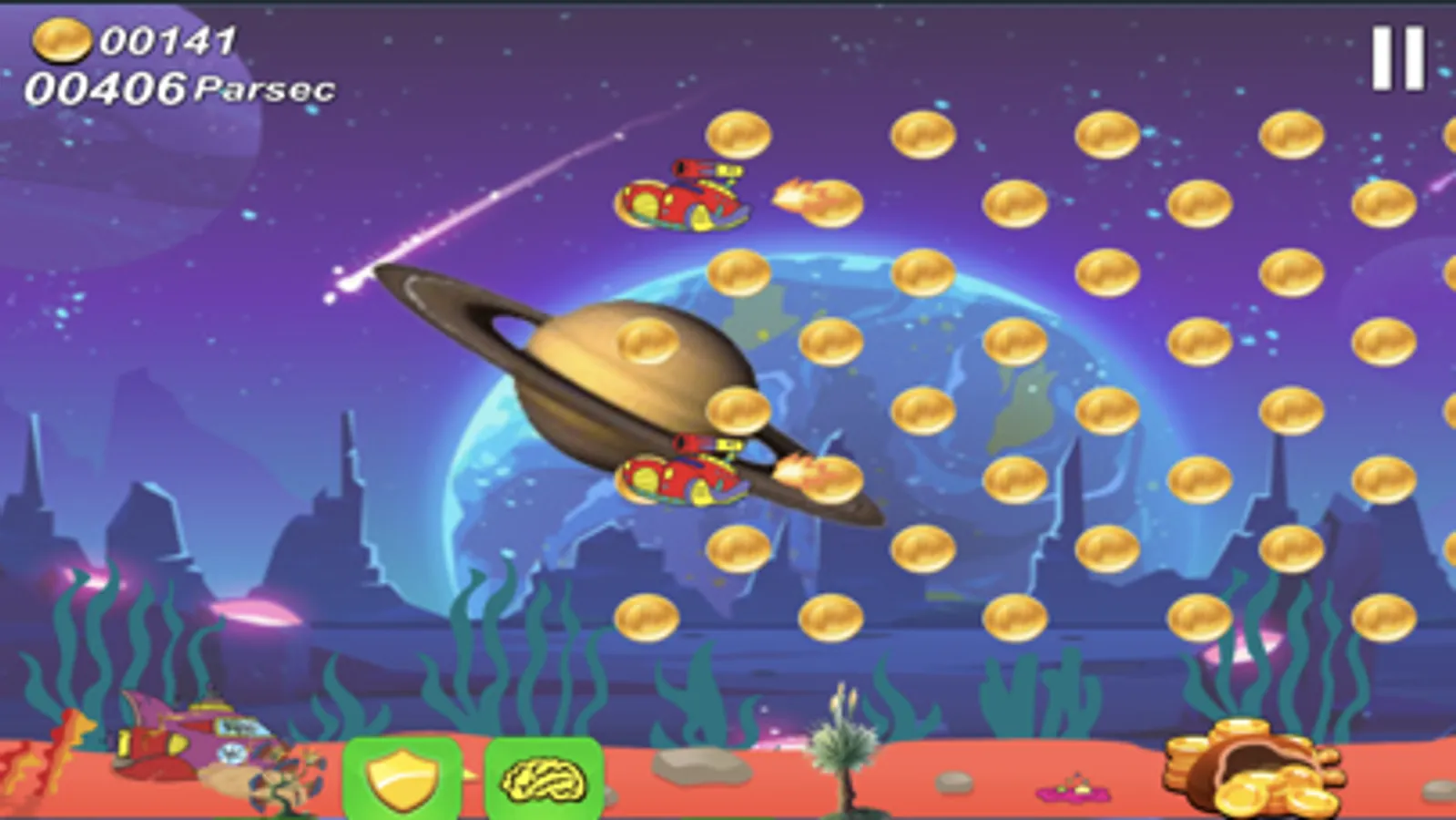 Earn space coins to buy extra boosters as well as 2 additional transports: THE SAUCER and THE JETPACK.