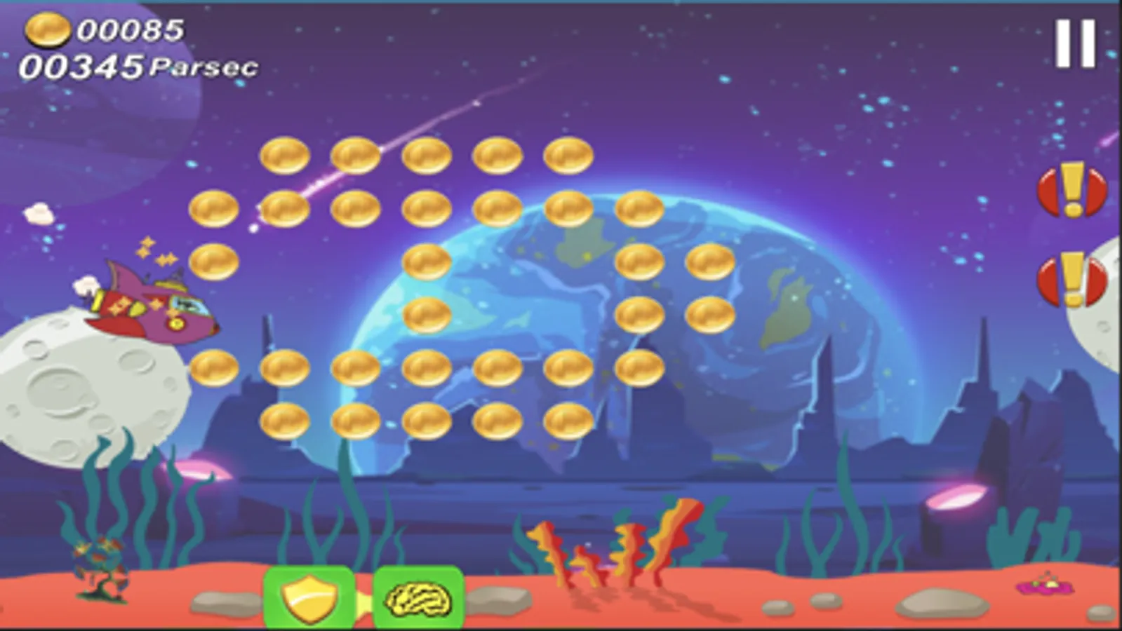 The further you travel the faster the ship moves. You need to avoid all obstacles while collecting those special space coins!