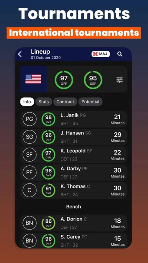 Basketball Legacy Manager 22 is the ultimate mobile basketball manager experience. Manage all aspects of your basketball team to create the ultimate legacy. Coaches, scouts, drafting, trading, contract negotiations, player development, all this will help you dominate the league for decades.