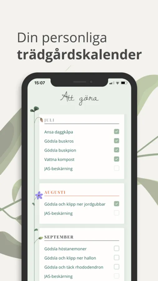 Appen ’Mitt trädgårdsår’ är en kalender med en att-göra lista för just din trädgård.