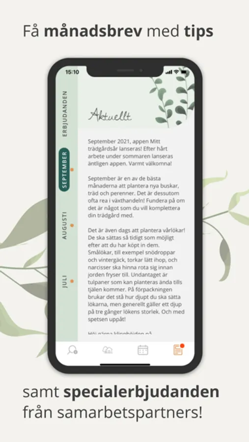 I appen får du även ett nyhetsbrev varje månad med inspiration och generella råd. Du får även fina erbjudanden från våra samarbetspartners.