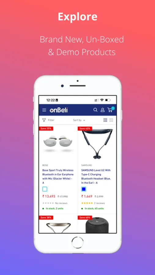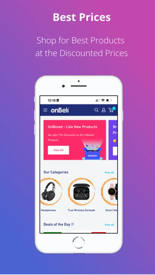 OnBeli iOS App is easy to use. The Users can download it for free and enjoy shopping anywhere, anytime. The app is a single destination for Brand New Products, UnBoxed Products, Demo Product & Pre-Owned Products, with attractive discounts & deals.