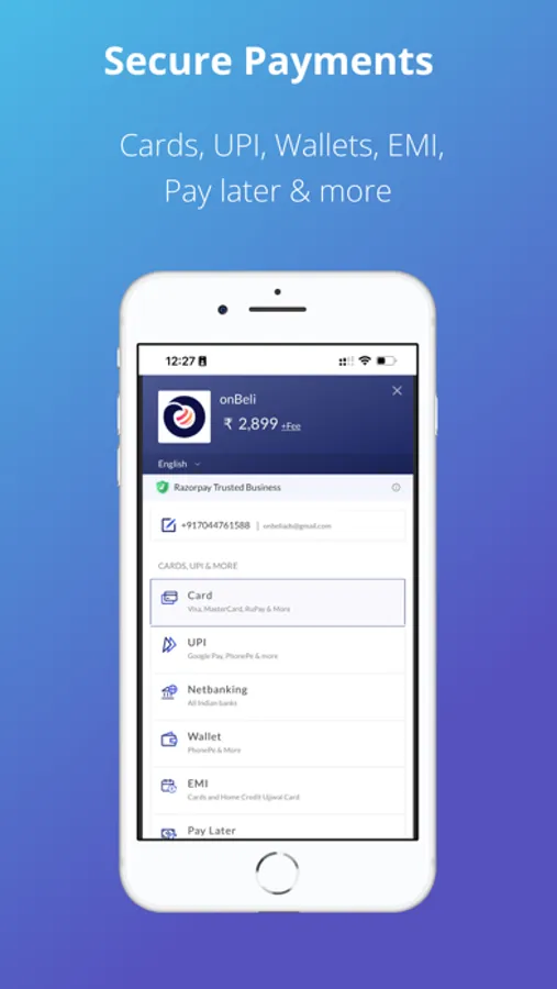 ● Safe & Secure Payments: Credit/Debit Card, EMI, NetBanking, UPI, PayLater & more.
