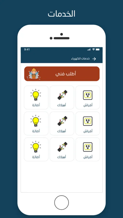 تطبيق يخدم كل عميل يحتاج سباكة او كهرباء او تبريد او يريد طلب فنى