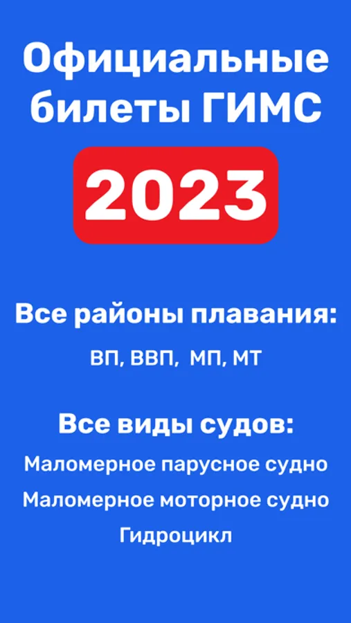 Приложение содержит актуальные на 2023 год билеты ГИМС, для подготовки к экзамену на право управления маломерным судном на территории РФ.
