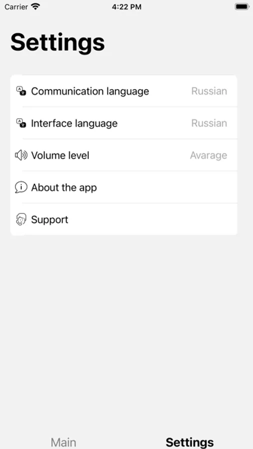 The application provides various settings that will make communication convenient, for example, changing the language of the app.